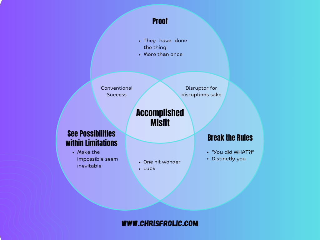 Accomplished Misfits create industries, whole new categories, and their success may look inevitable in hindsight, but seemed impossible at the outset.